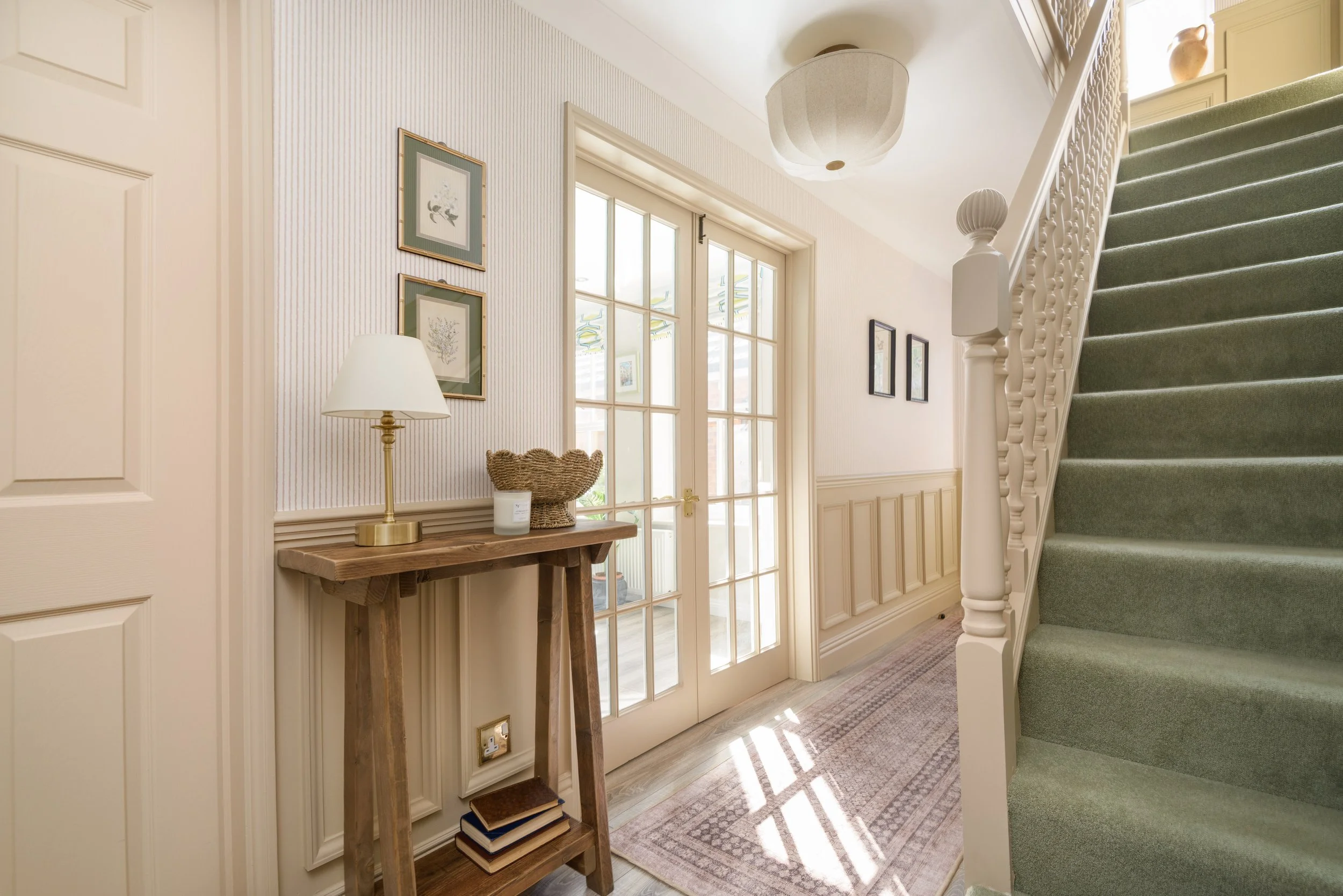 This hallway and landing were refreshed to bring warmth, character and flow back into the home.